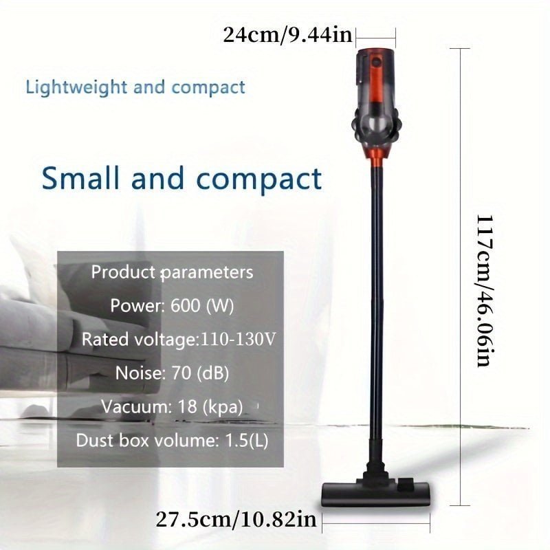1pc. 110V Vacuum Cleaner 18KPA Wet And Dry 600W High Power Vacuum Cleaner. Portable Household Low Noise Handheld Vacuum For Pet Hair. Hard Floor And Carpet. Four-in-one Lightweight Handheld Rod Vacuum Cleaner