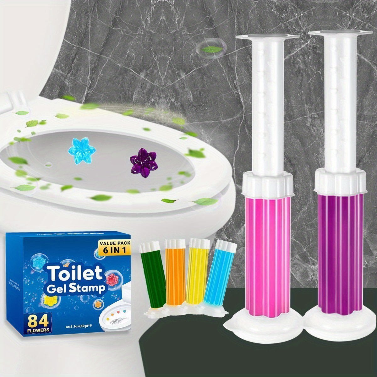 6pcs. Toilet Cleaning Gel. Flower Stamp Toilet Gel. Flower Scented Toilet Deodorant Gel. Toilet Bowl Cleaner. Odor Removal Gel. Bathroom Air Freshener. Suitable For Toilet. Bathroom. Cleaning Supplies
