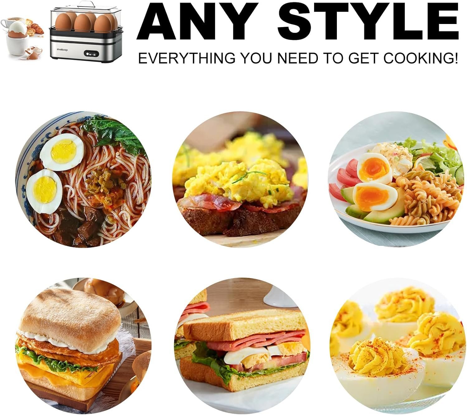 • Multifunctional Egg Cooker: Evoloop egg boiler is ideal for a busy single person or a large family to make hard boiled eggs, soft boiled eggs, poached eggs, deviled eggs, egg sandwiches, scrambled eggs, the perfect dish for any breakfast, dinner or special event.