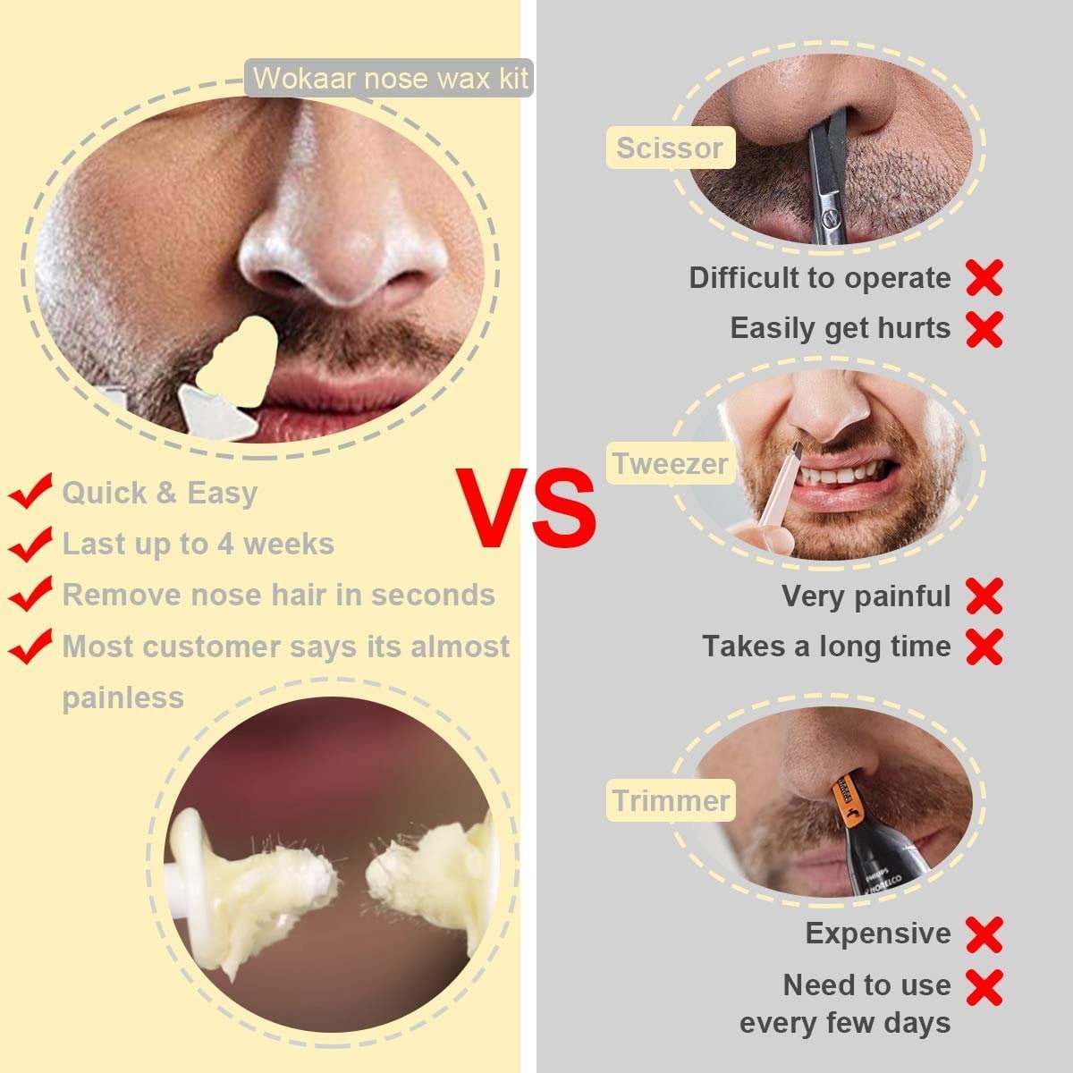 ♥ LAST UP TO 4 WEEKS: Nose Waxing is preferred. unlike shaving. the hair stays away much longer. Nose waxing kit removes hair from the follicle. Pulls nose hairs from the root. leaving results that can last up to 4 weeks. Nose hair growth is slowed down with regular use.
